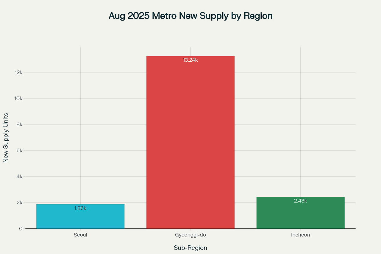August 2025 new supply units in Seoul, Gyeonggi-do, and Incheon