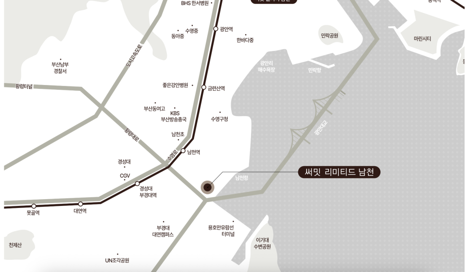 - 남천동~광안리 도보권: 마트, 편의점, 병원, 상권 몰려있음