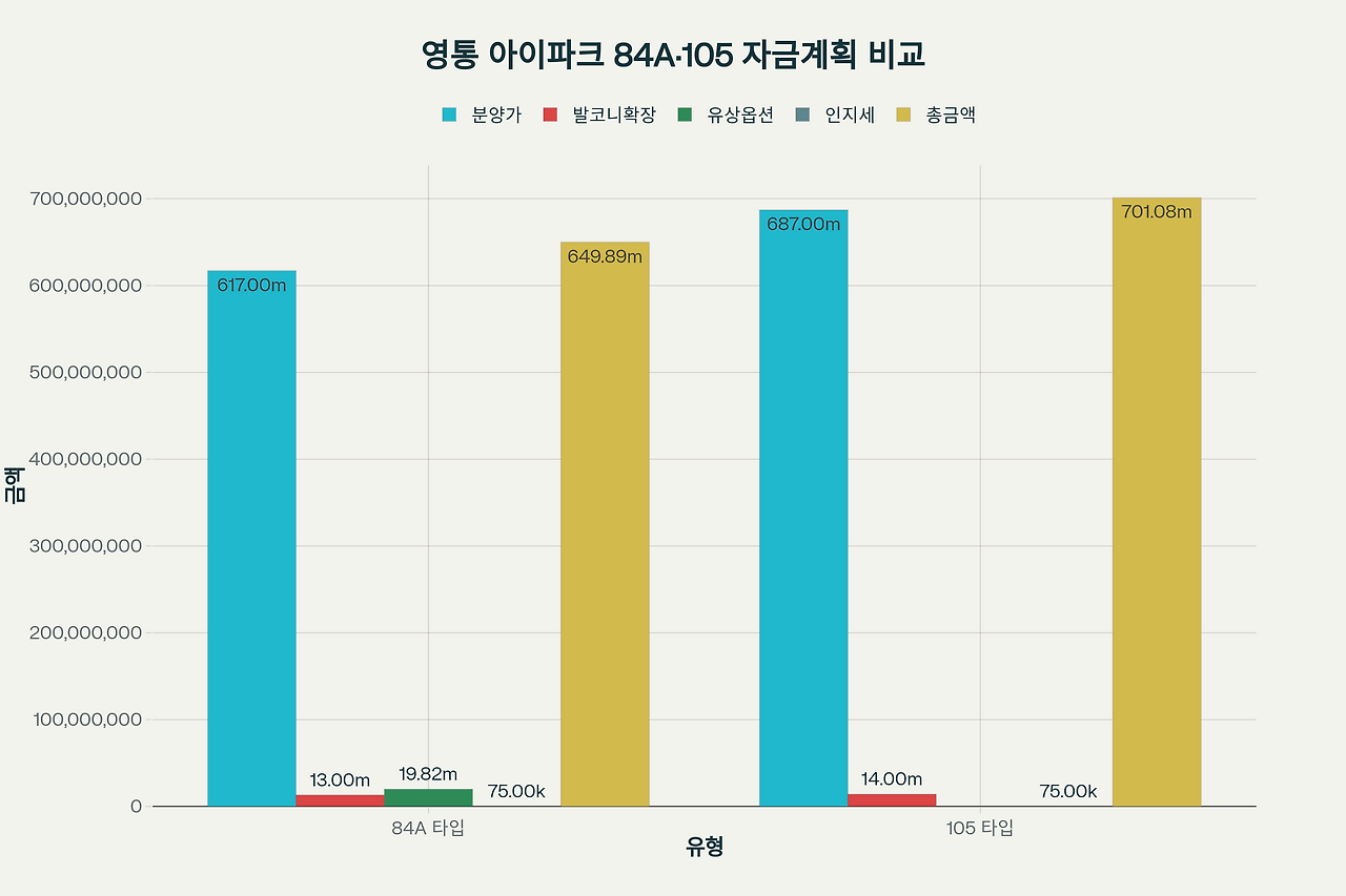 영통 아이파크캐슬 3단지 84A vs 105 타입 자금계획 비교