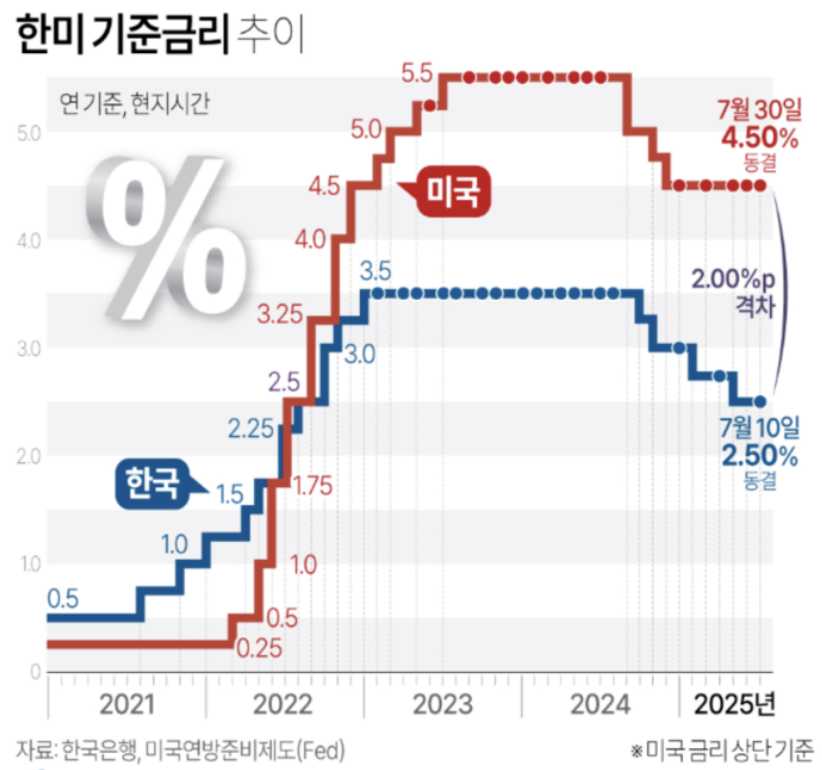 한국은행은 2025년 들어 기준금리를 연속 인하해 현재 2.50% 수준을 유지하고 있습니다. 물가 안정과 실물경제 부진을 고려해 추가 완화 여지가 있는 상황입니다.