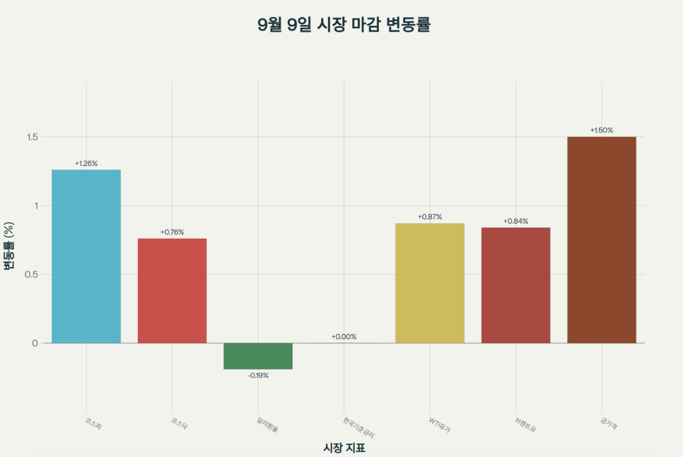 2025년 9월 9일(화) 국내 증시가 4년 1개월 만에 연고점을 경신하며 강세로 마감했습니다.